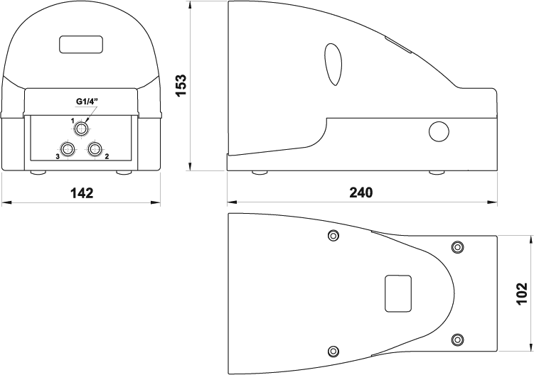 Pedale 3/2 NC 1/4" monostabile portata progressiva, con protezione