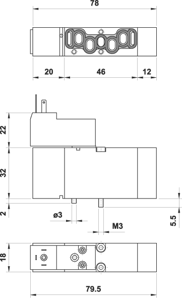 VDMA 18 mm 5/2 comando elettrico 110V 50/60Hz, ritorno a molla